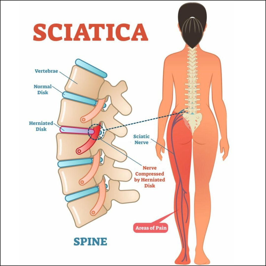 Sciatica refers to pain that radiates along the path of the sciatic nerve, which runs from the lower back through the hips and buttocks and down each leg. Sciatica typically affects only one side of the body and is caused by irritation or compression of the sciatic nerve.